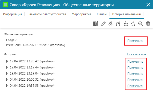 - История изменений