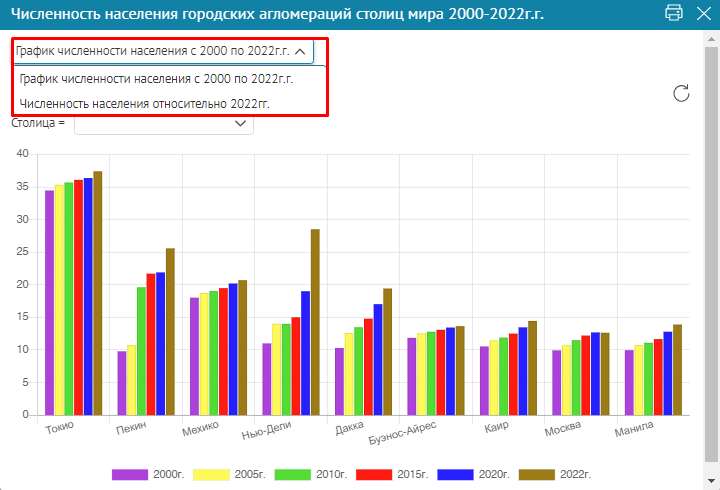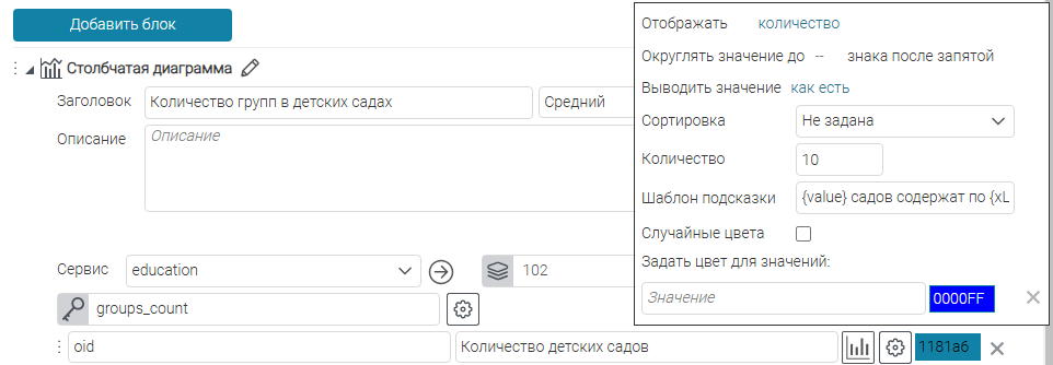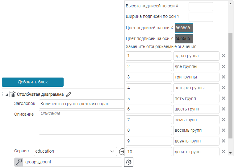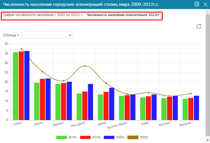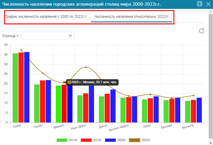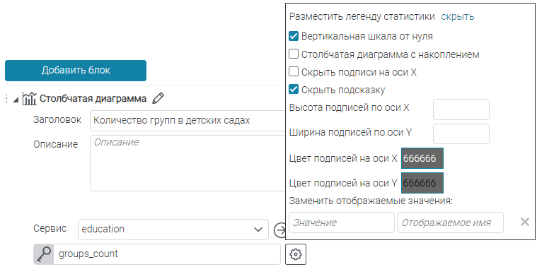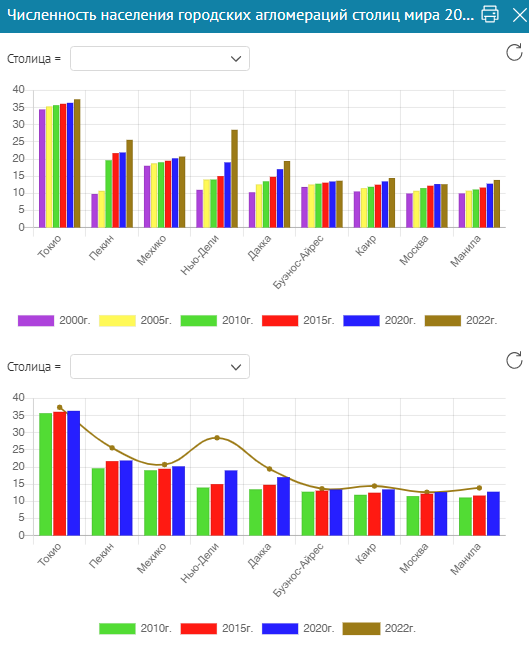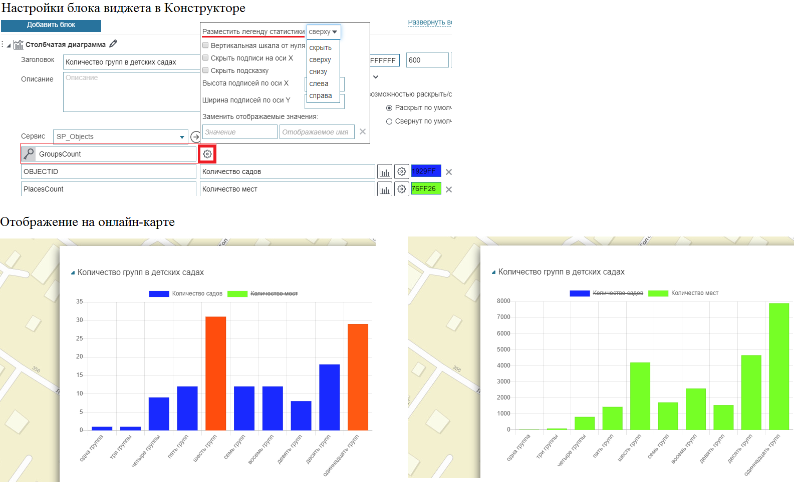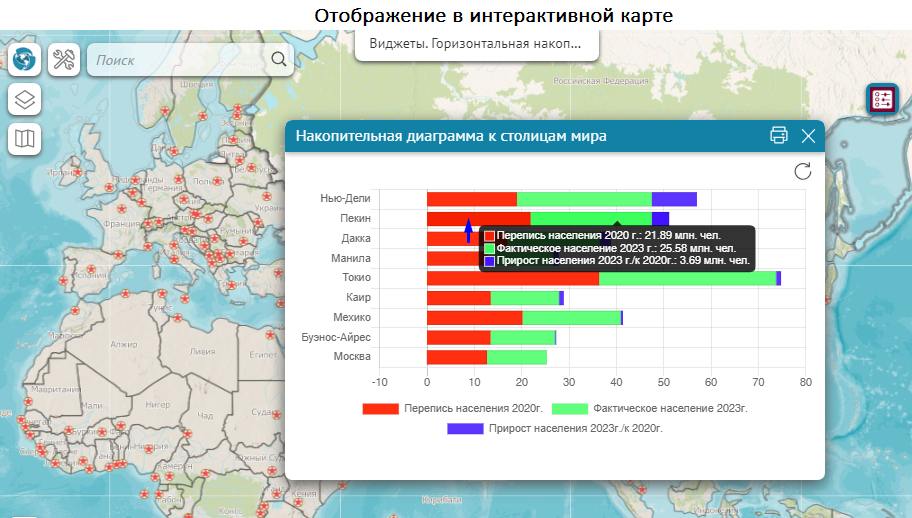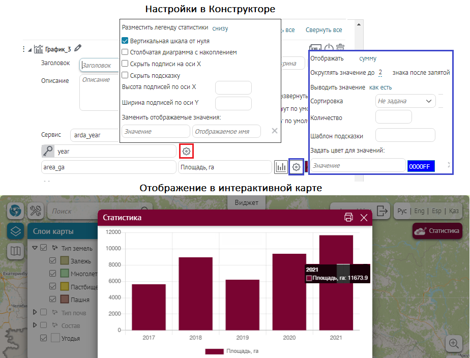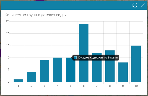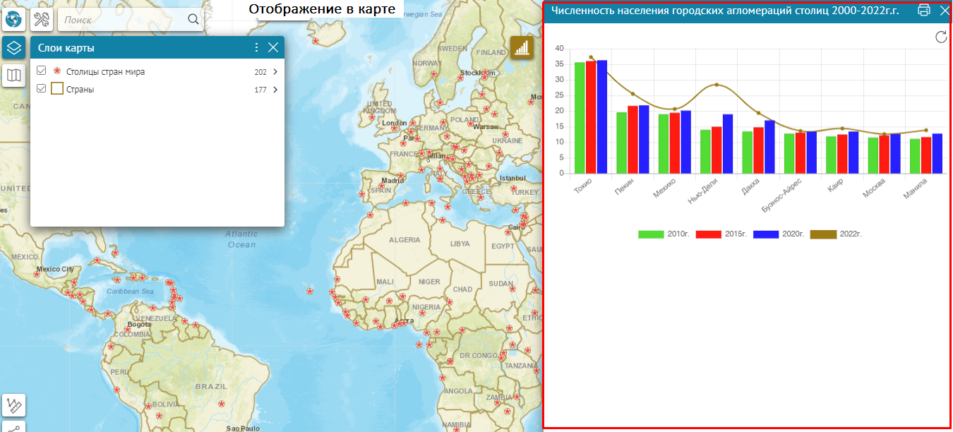 - Отобразить информацию, содержащуюся в слое картографического сервиса, в виде графиков, диаграмм и таблиц.