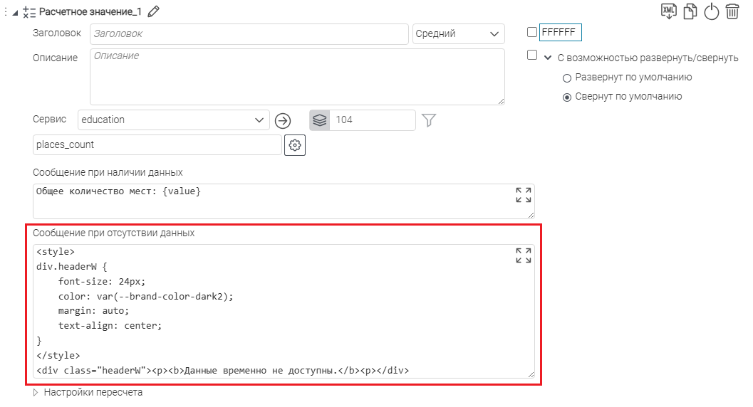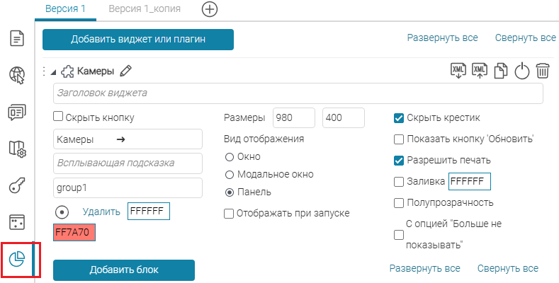Примечание: Если создан JavaScript-плагин, в мобильном приложении в виджете не будут отображаться блоки с HTML-кодом.