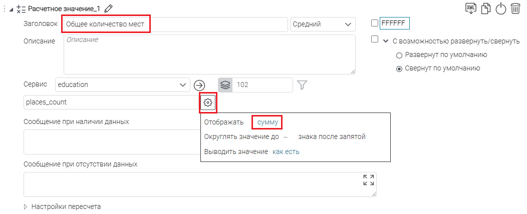 Также в названии вкладок и в названии ссылок можно использовать макрос расчетного значения, пример настройки показан ниже, см.