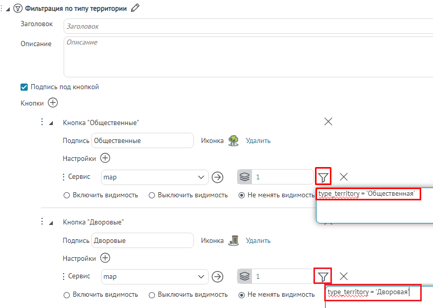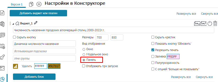 Рисунок 479 - Виджет с использованием Фильтра блоков