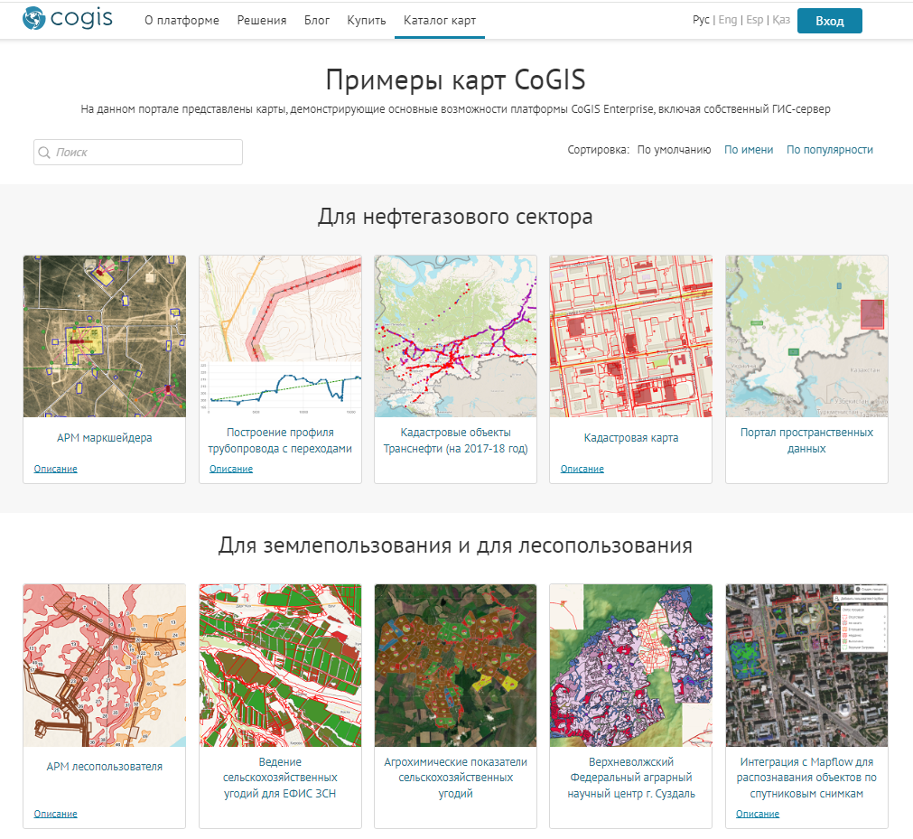 с каталогом картографических приложений, сгруппированных по тематическим разделам (см.