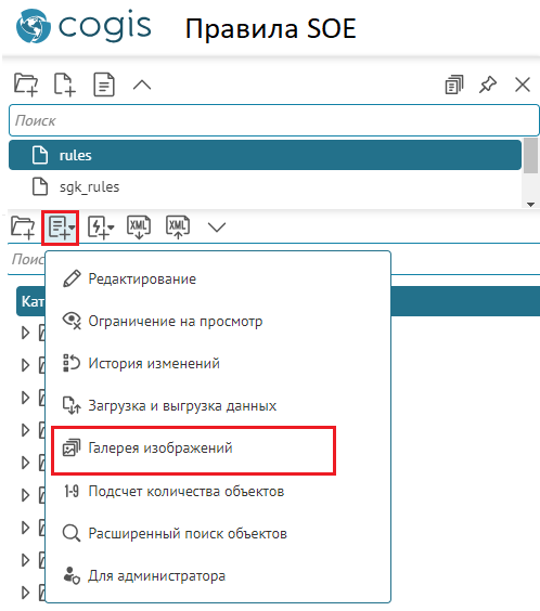 - просматривать все прикрепленные к объектам изображения или изображения только в рамках текущего экстента;
