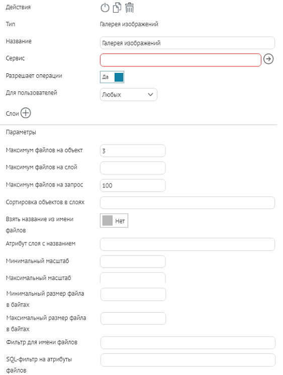 - Обратите внимание, что для одного картографического сервиса используется только один плагин Галерея изображений . Если для одного картографического сервиса настроено несколько плагинов Галерея изображений , то будет использоваться последний (нижний) в списке плагинов.