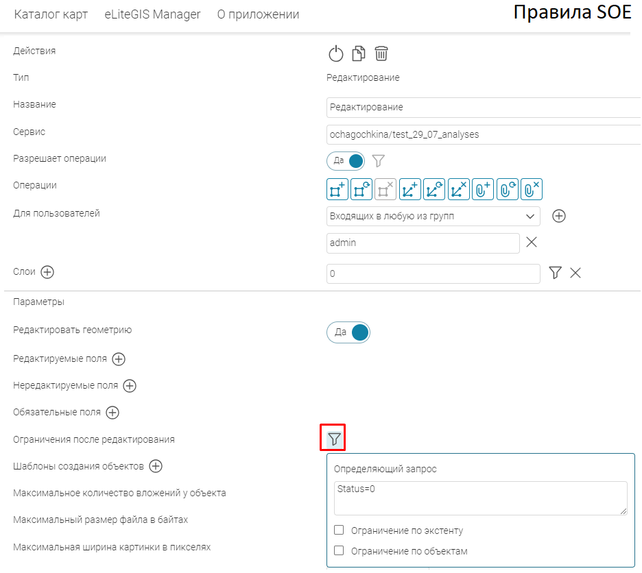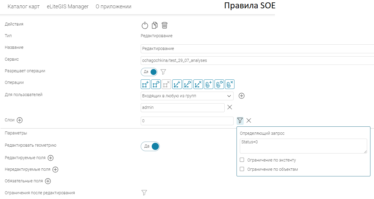 позволяет создавать и редактировать пространственные объекты, их атрибуты, вложенные файлы и связи с другими объектами. Таким образом, функционал ГИС-сервера может быть значительно расширен за счет возможности ограничивать область действия пользователя определенными слоями, областями внутри слоев, типами объектов.
