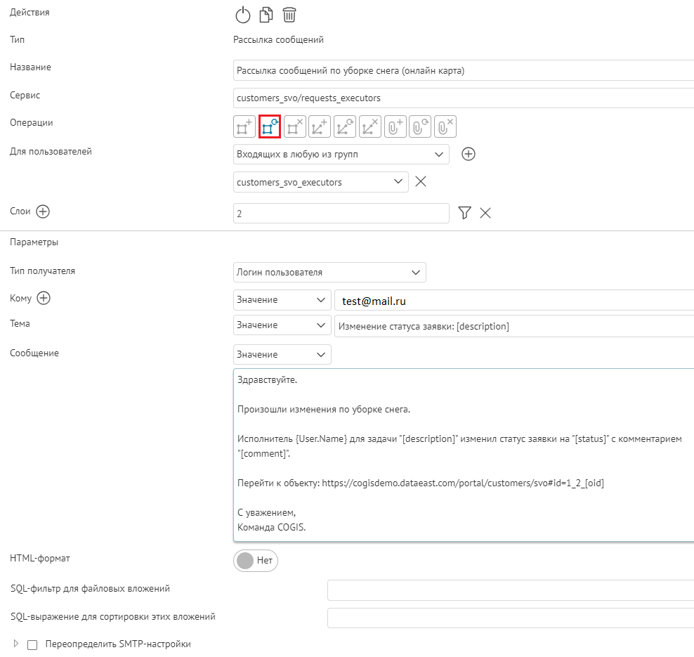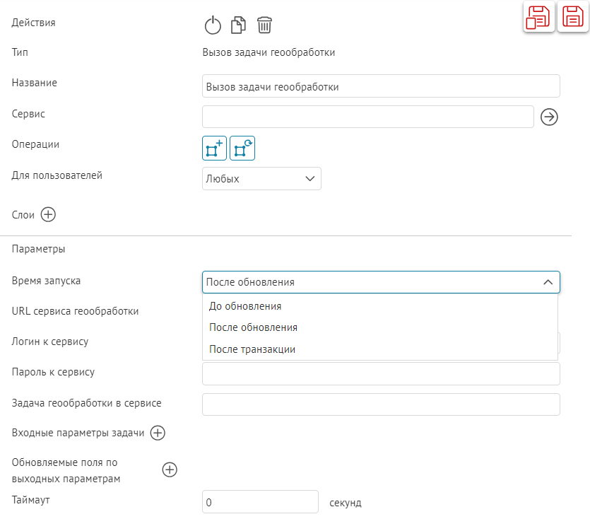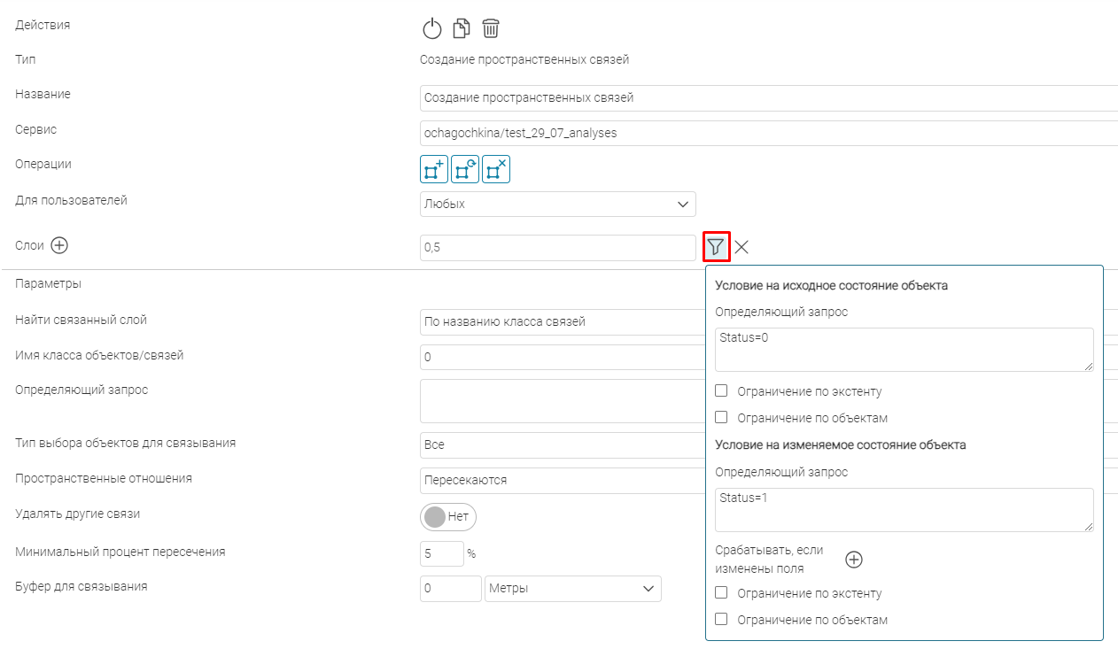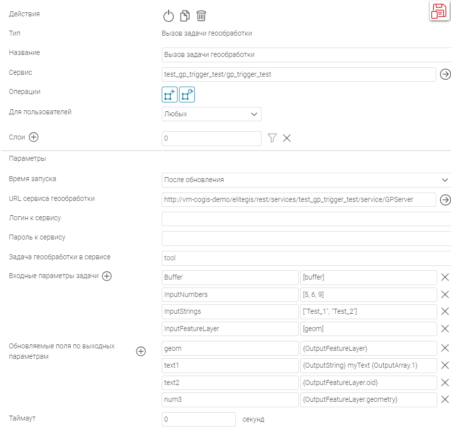 позволяет запускать задачи сервиса геообработки в зависимости от декларативных настроек публикации и заданных дополнительных возможностей. Например, можно задать время запуска геотриггера при изменении объекта для определенных пользователей.