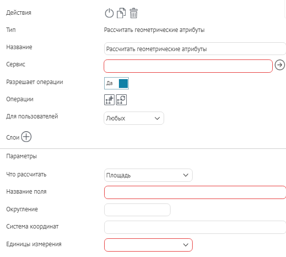 Геотриггер предназначен для записи значений редактируемого объекта в атрибутивные поля: