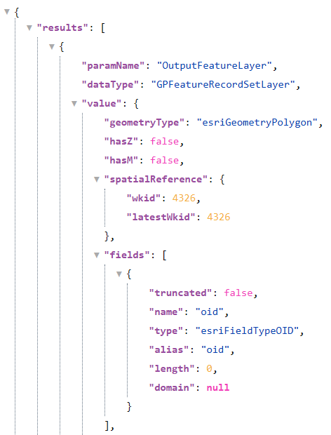 Рисунок 617 - Фрагмент JSON файла по завершении работы инструмента геообработки