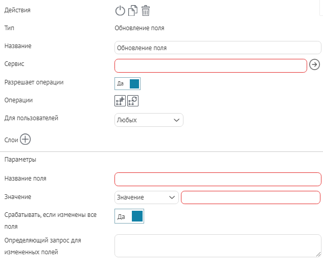 Например, если настроить этот геотриггер для обновления существующих атрибутивных полей на основе выходных публичных параметров, то исходя из настроек плагина редактирования геотриггер сработает при обновлении объекта и автоматически выполнит заданные обновления.