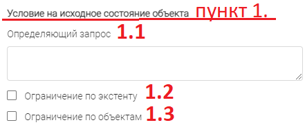 Рисунок 609 - Настройка ограничения Условие на исходное состояние объекта к опциям: Определяющий запрос, Ограничение по экстенту, Ограничение по объектам