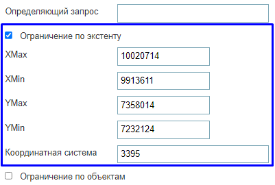 Рисунок 605 - Настройка ограничения Условие на исходное состояние объекта к опциям: Определяющий запрос, Ограничение по экстенту, Ограничение по объектам