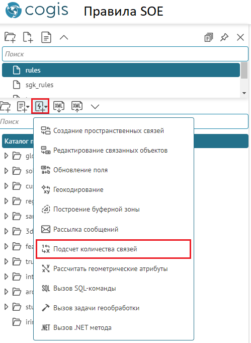 - Запись в значение объекта количества связанных с ним объектов другого слоя. Подсчет количества связей.