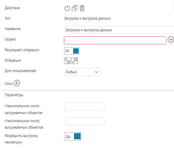 - Обратите внимание, что для одного картографического сервиса используется только один плагин Загрузка и выгрузка данных . Если для одного картографического сервиса настроено несколько плагинов Загрузка и выгрузка данных , то будет использоваться последний (нижний) в списке плагинов.