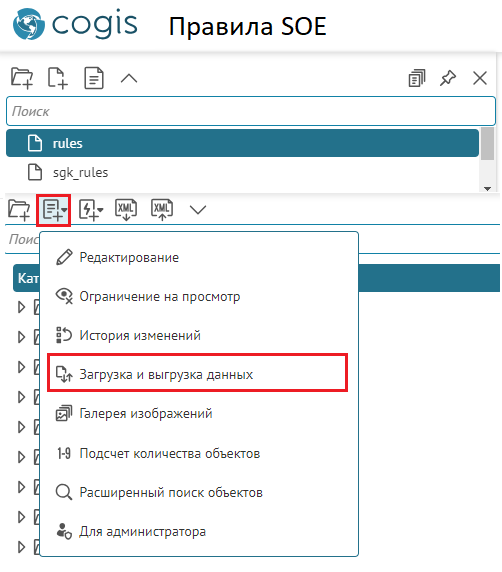 - Панель инструментов – Скачать, Обновить из файла, Переименовать