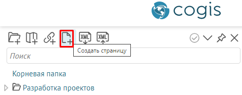 Чтобы создать страницу, в панели управления деревом каталога нажмите на кнопку