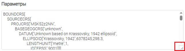Рисунок 112 - Возможность растянуть многострочное текстовое поле раздела Параметры
