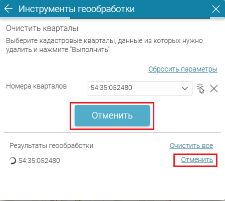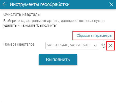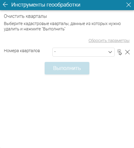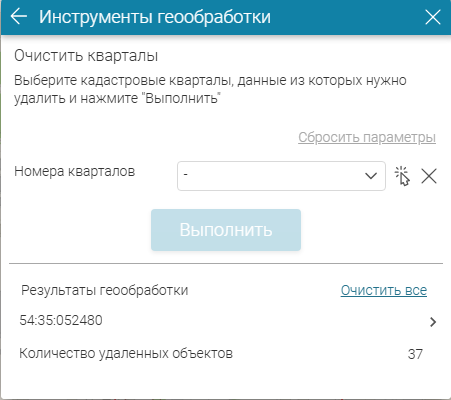 Инструмент можно запускать несколько раз, меняя выбор кварталов для очищения. Чтобы сбросить выбор кварталов, нажмите