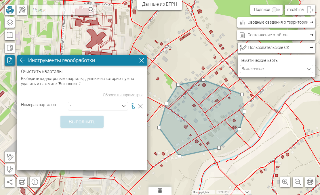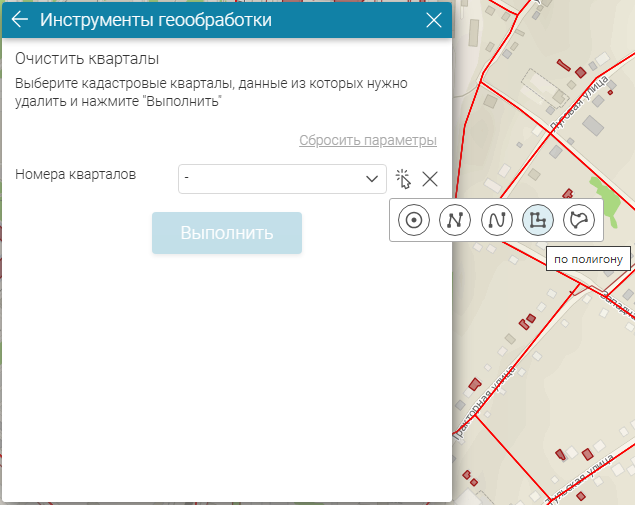 Кварталы для очищения можно выбрать и непосредственно с карты. Для этого используйте набор инструментов