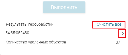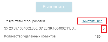 видны результаты всех запусков инструмента в пределах одной сессии. Можно просмотреть детали каждого запуска, нажав на стрелочку, расположенную справа от кадастровых номеров выбранных кварталов (см.