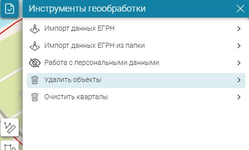 Чтобы удалить все объекты в определенных кадастровых кварталах, воспользуйтесь инструментом геообработки