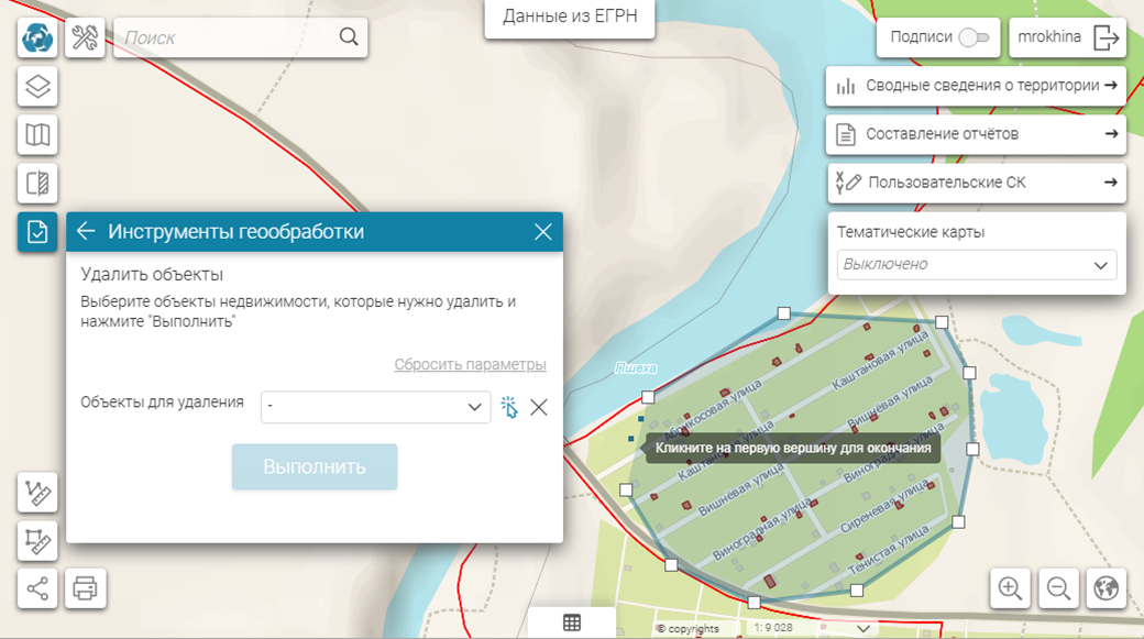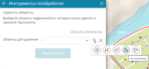 Объекты для удаления можно выбрать и непосредственно с карты. Для этого используйте набор инструментов