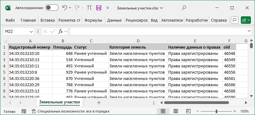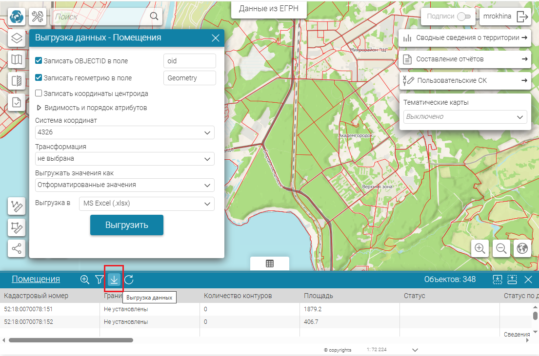 Чтобы выгрузить данные по объектам недвижимости в отдельный файл, воспользуйтесь инструментом