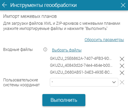 Импорт межевых планов осуществляется с помощью инструмента геообработки