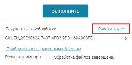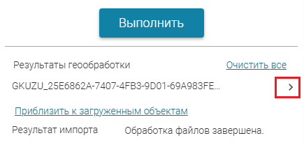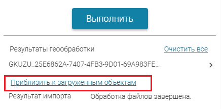 Если в процессе обработки данных были загружены новые объекты с геометрией, автоматически охват интерактивной карты приближается к загруженным объектам. Но если требуется, вы можете увидеть загруженные объекты на карте, нажав на кнопку-ссылку