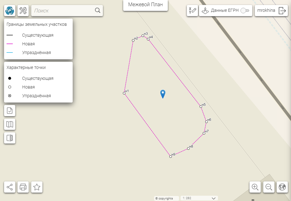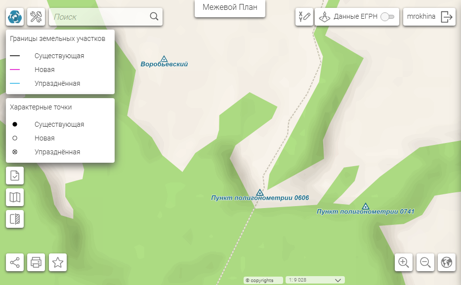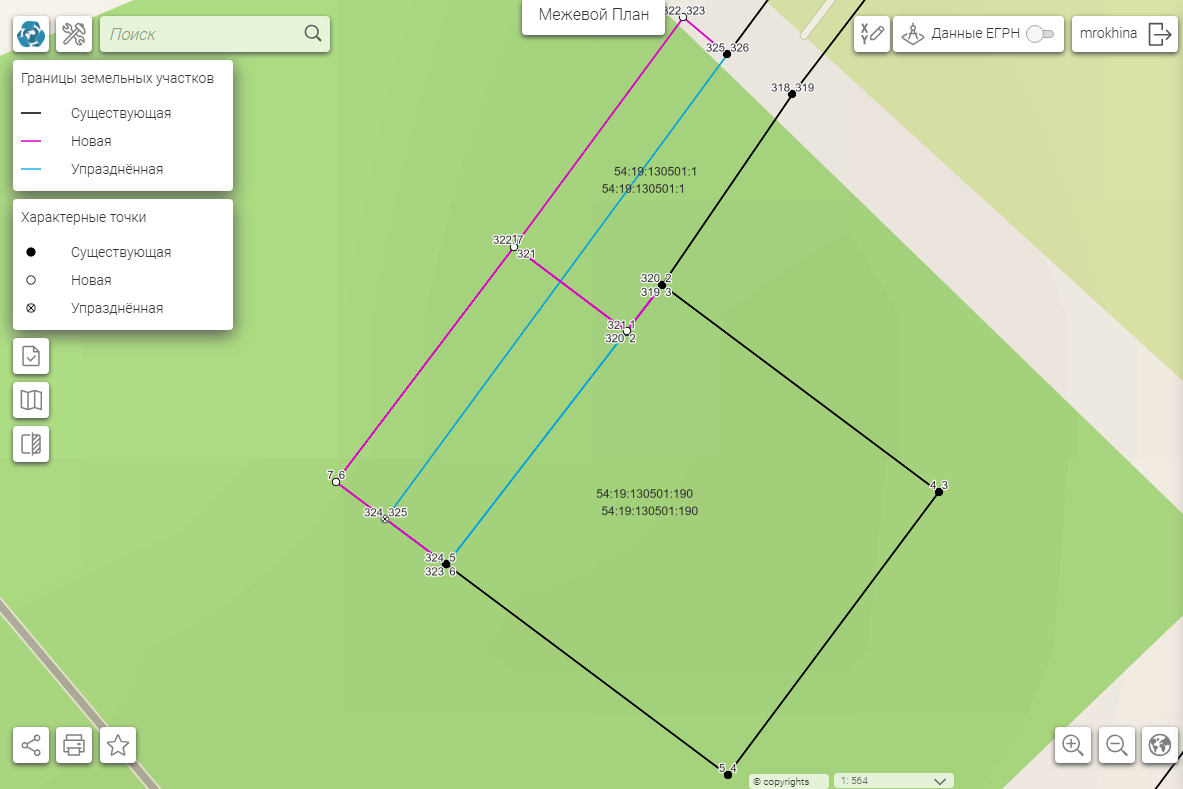 Вы можете видеть, какие границы и характерные точки земельного участка существовали, какие были в результате землеустроительных работ обновлены или упразднены.