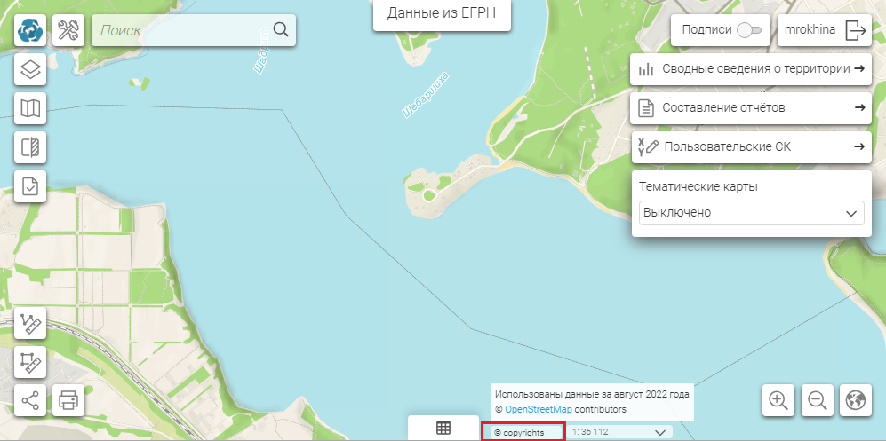 Базовые карты могут иметь информацию о копирайте. Чтобы ее просмотреть, нажмите на строку