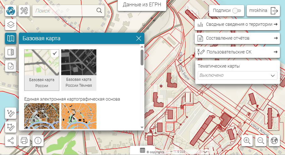 Чтобы сменить текущую базовую карту, нажмите в окне