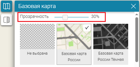 Настройка прозрачности базовой карты доступна только в картографическом приложении