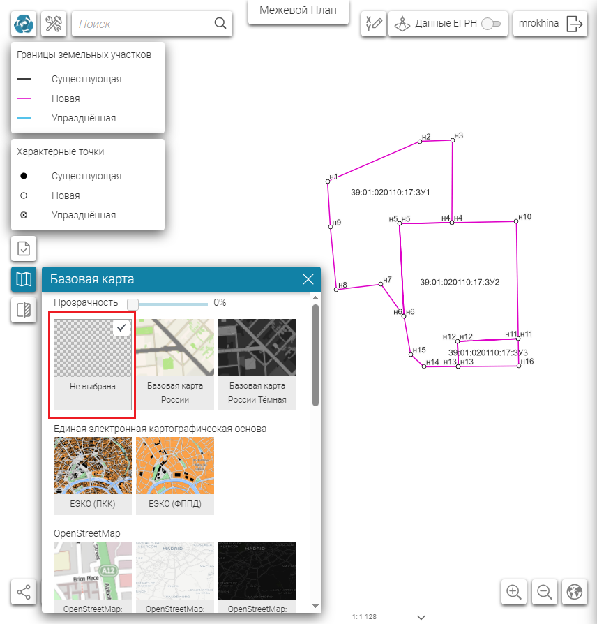 Чтобы настроить прозрачность базовой карты, используйте движок прозрачности в окне