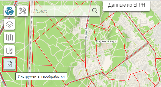 Рисунок 209 - Расположение инструментов геообработки картографического приложения