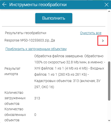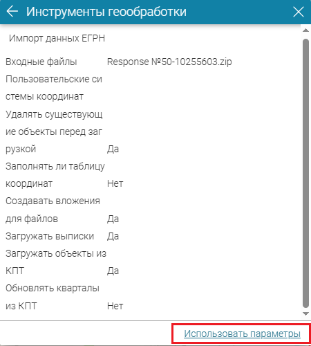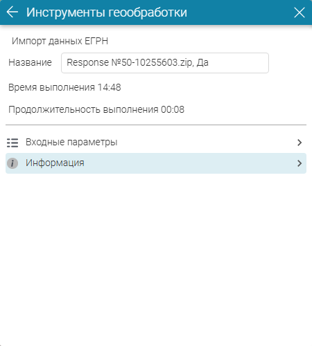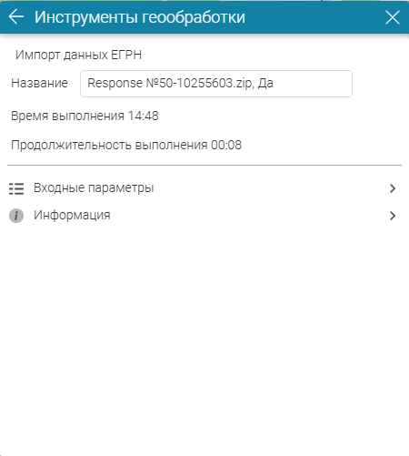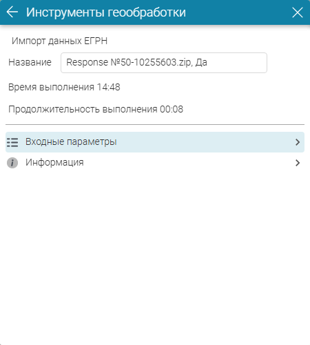 Рисунок 210 - Детали запуска инструмента геообработки (на примере инструмента Импорт данных ЕГРН)