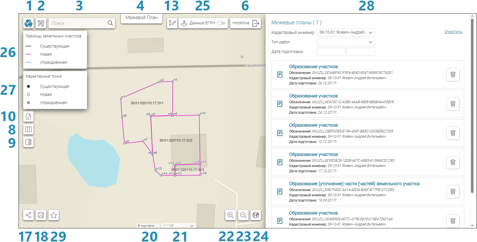 Рисунок 180 - Элементы интерфейса компонента Межевой план
