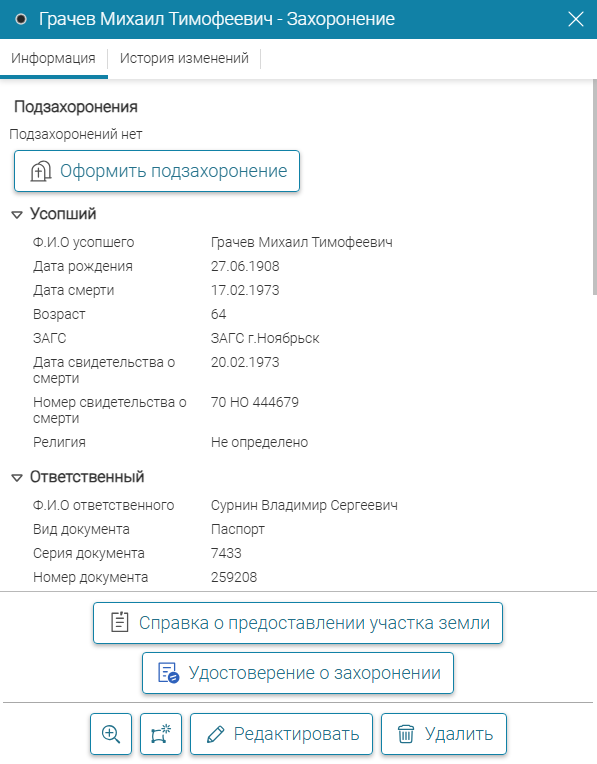 - Ввод данных по захоронениям