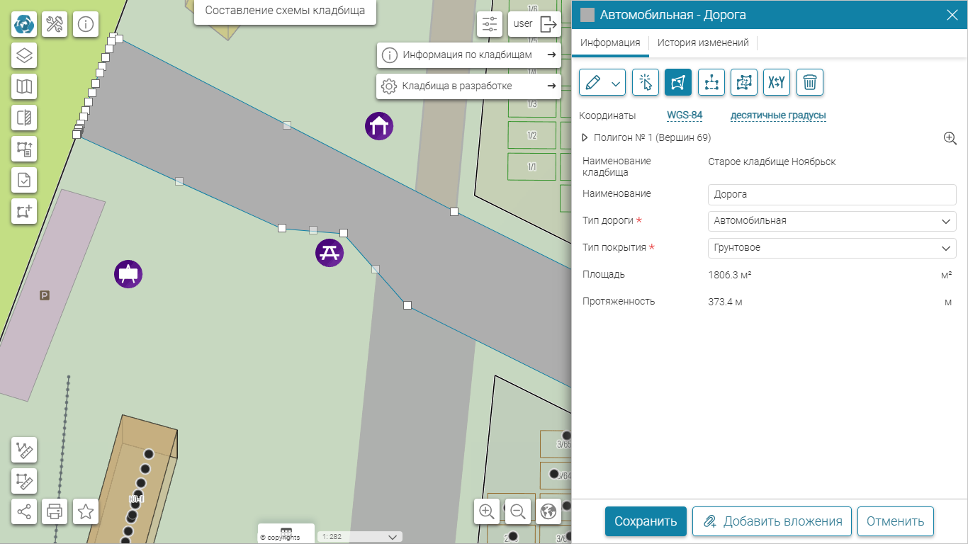 Для того, чтобы создать более детальную схему кладбища, добавьте следующие объекты инфраструктуры: