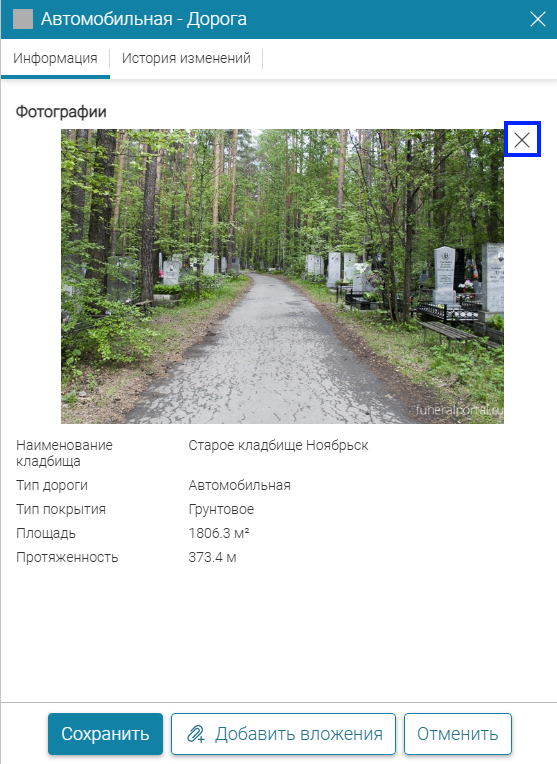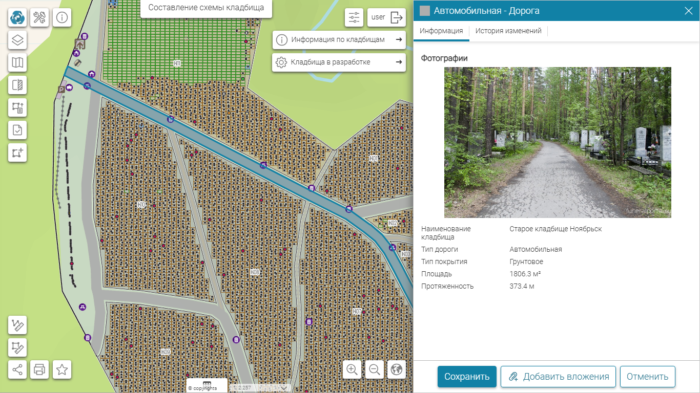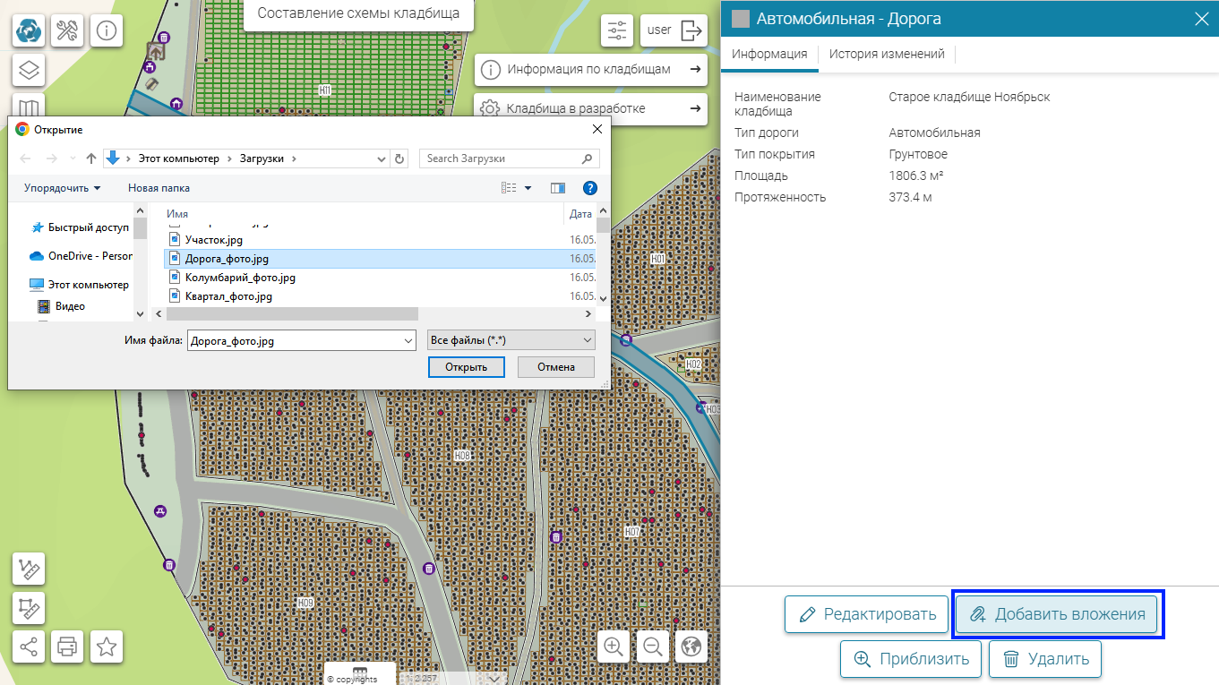 Все объекты инфраструктуры создаются с помощью инструмента «Создание новых объектов» и фото к ним добавляются по кнопке «Добавить вложения», подробнее см. раздел